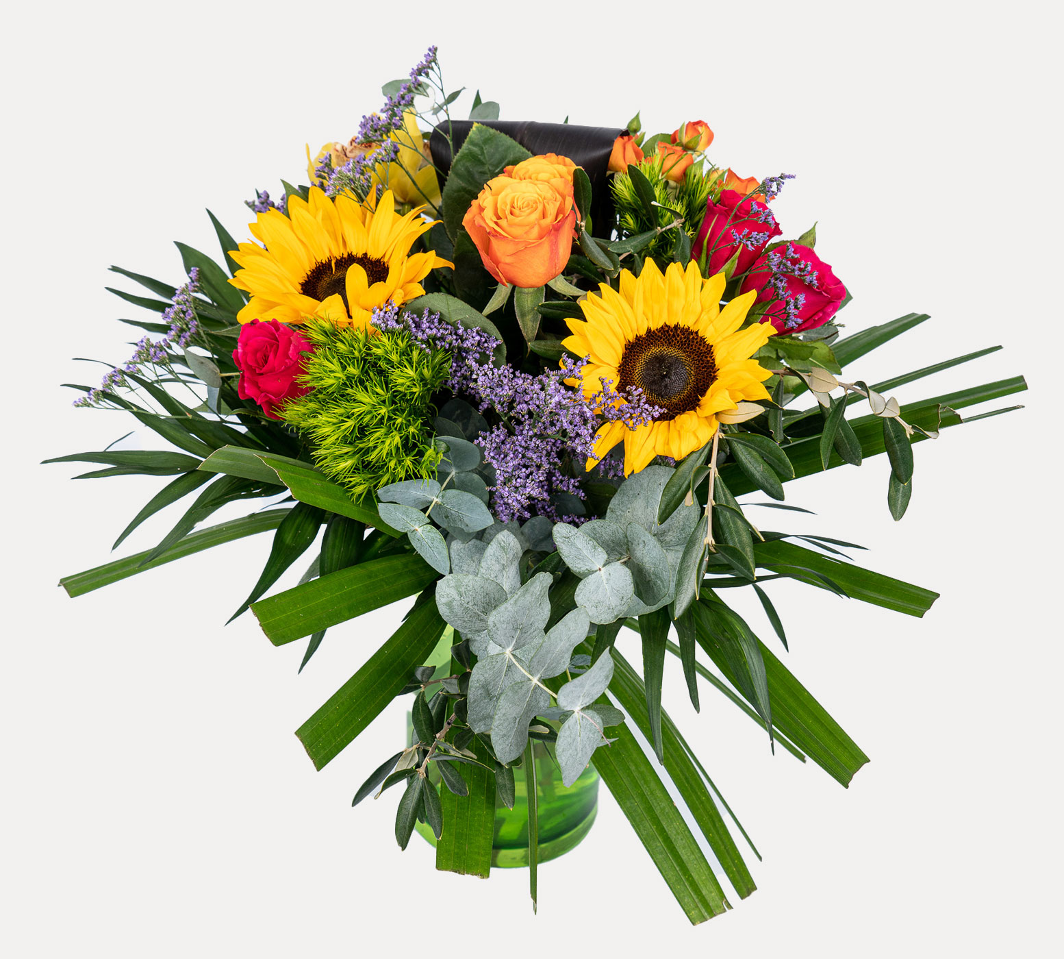 Remove all the packaging, so allowing the flowers to breathe, Do not cut the raffia around the stems as your bouquet has been hand tied for you, once in the vase if you need to loosen the bouquet then snip the raffia. This will keep it arranged as designed.